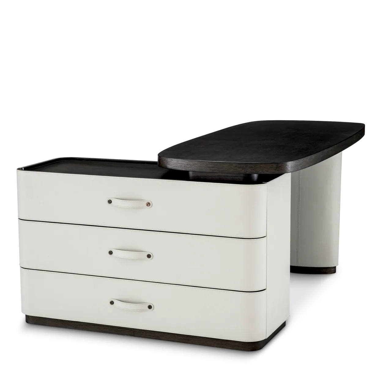 Svetlošedá umelá koža | mokka rovná dubová dyha | otočný vrch.
