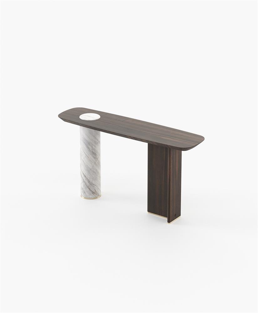 Mramorový konzolový stolík Kahlo je úžasným spojením prírodnej krásy a súčasného dizajnu. Vďaka vynikajúcej kombinácii mramoru a dreva tento výrazný kúsok dodá eleganciu a sofistikovanosť každej vstupnej hale.