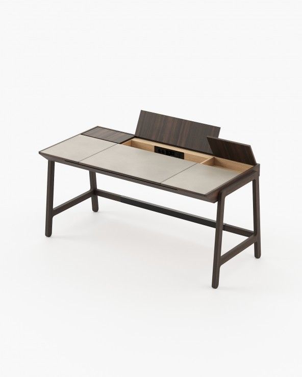 Kancelársky stôl Gatsby vnáša do pracovného priestoru zmysel pre pôvab a účelnosť. Pracovná doska je navrhnutá s čistými a jednoduchými líniami a má zdvíhacie veko potiahnuté kožou, ktoré dodáva pracovnému prostrediu textúru a príťažlivosť.