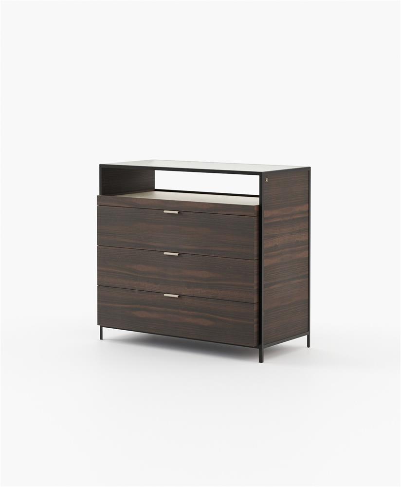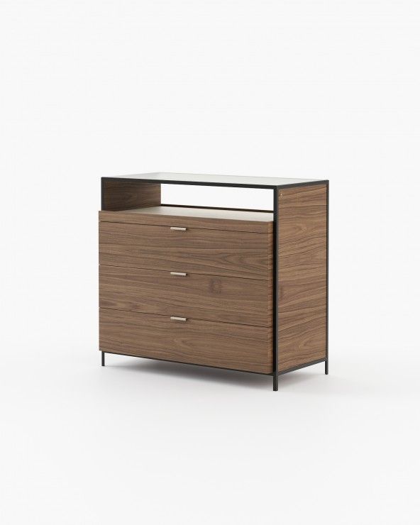 The Rowling Chest of Drawers is a functional piece that will add a refined touch to the interiors. With a sleek glass top and three spacious drawers, it offers both style and function.