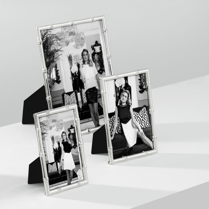 Strieborný kovový fotorámik Holden inšpirovaný bambusovou textúrou.