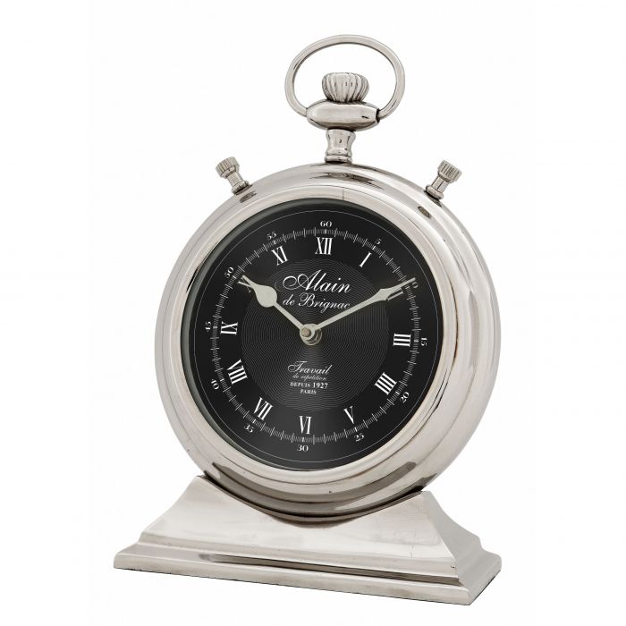 Vysokoleštené strieborné stolové hodiny Alain.