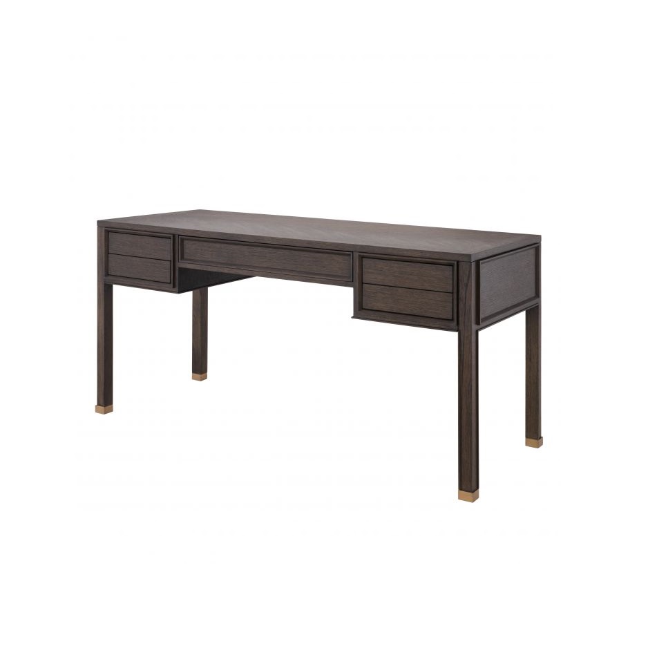 Písací stôl Melchior s piatimi zásuvkami a jemnými mosadznými akcentmi.