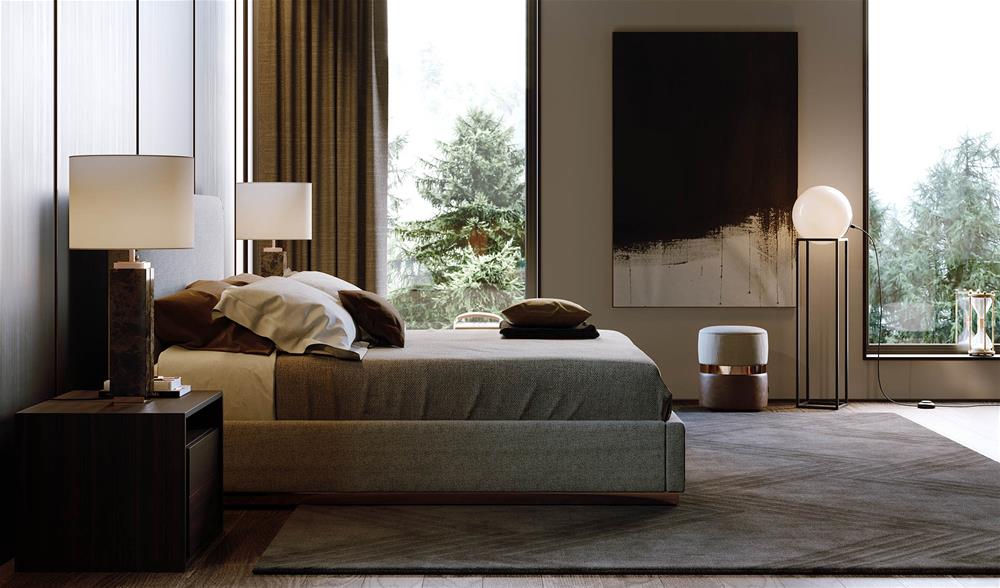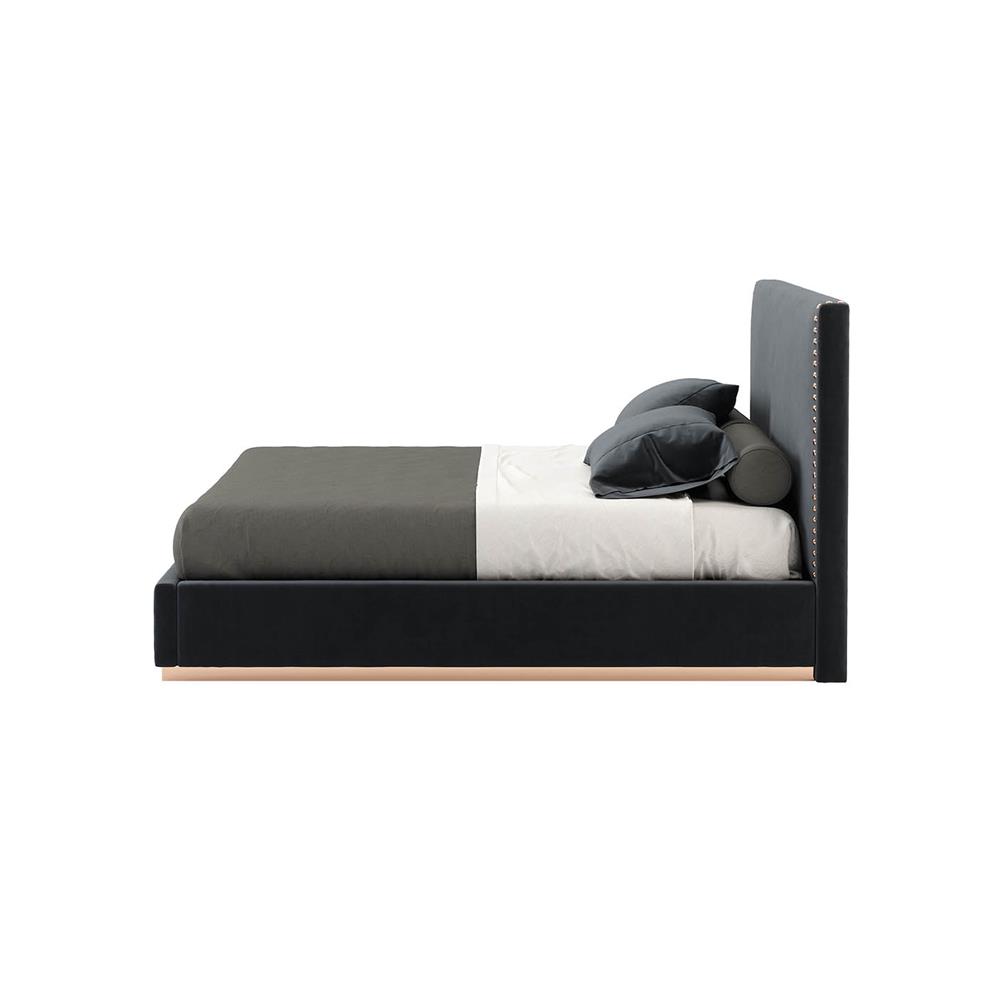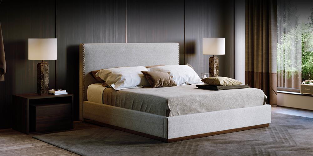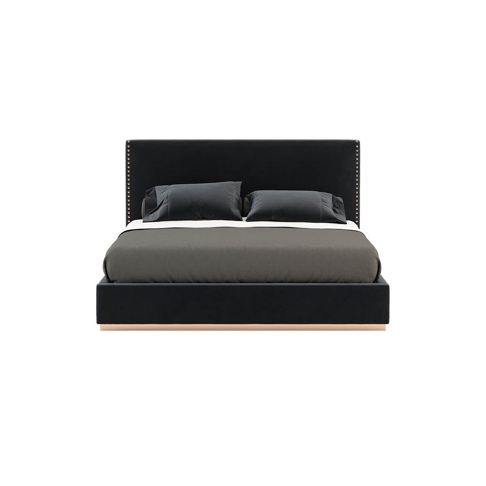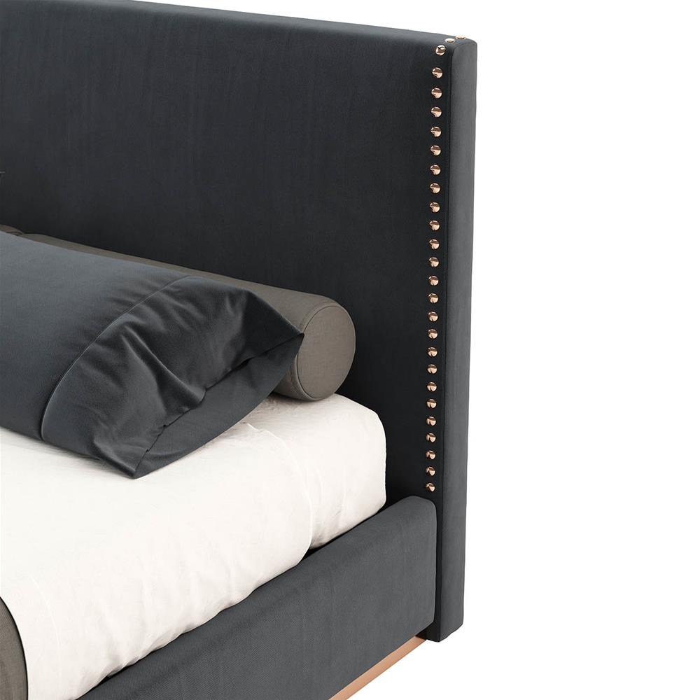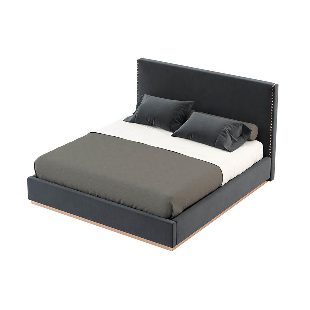 Čalúnená posteľ Corin s elegantnou metalickou základňou a nitmi. Posteľ sa dodáva vrátane roštov.
