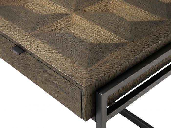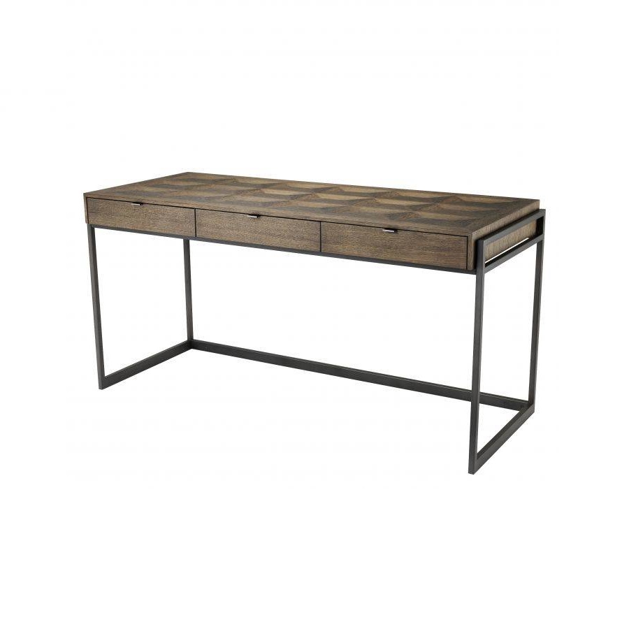 Písací stôl Gregorio s 3D dubovou dýhou a tmavými kovovými akcentmi.