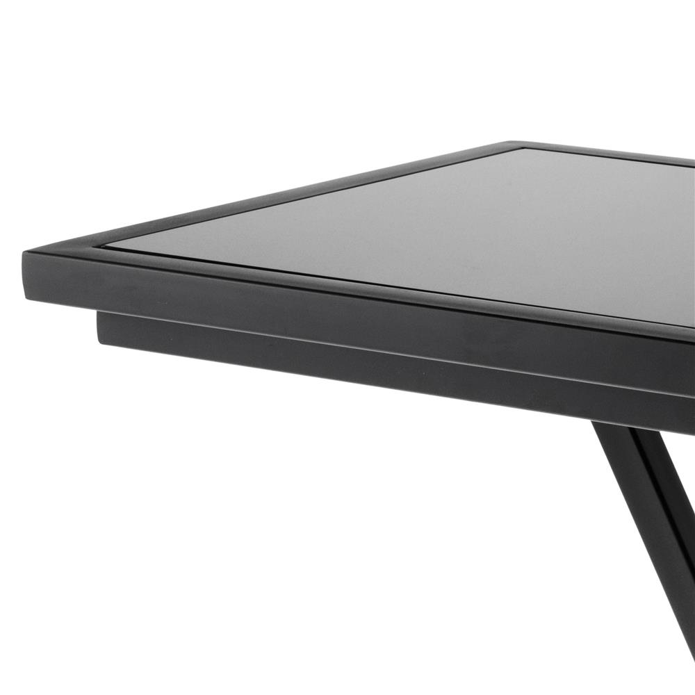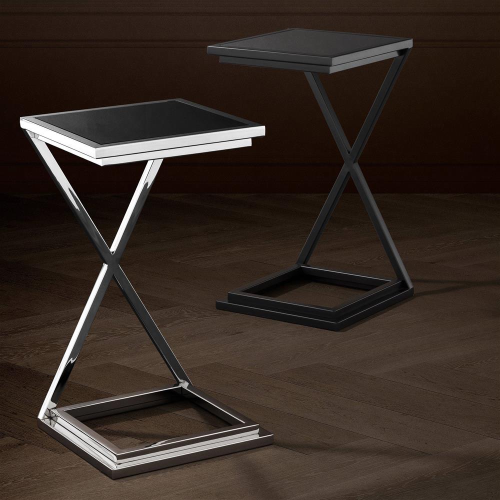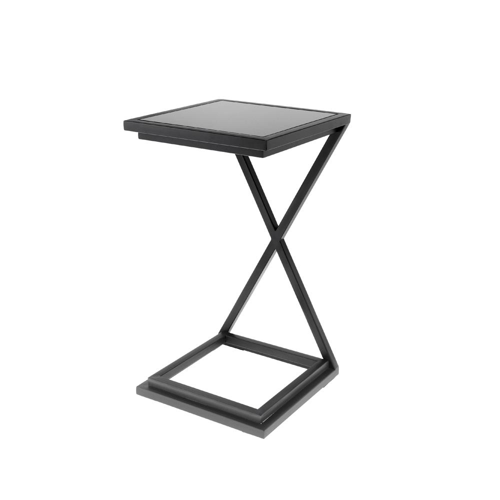 Príručný stolík Cross z vysokoleštenej ocele v matnom čiernom prevedení s čiernym sklom.