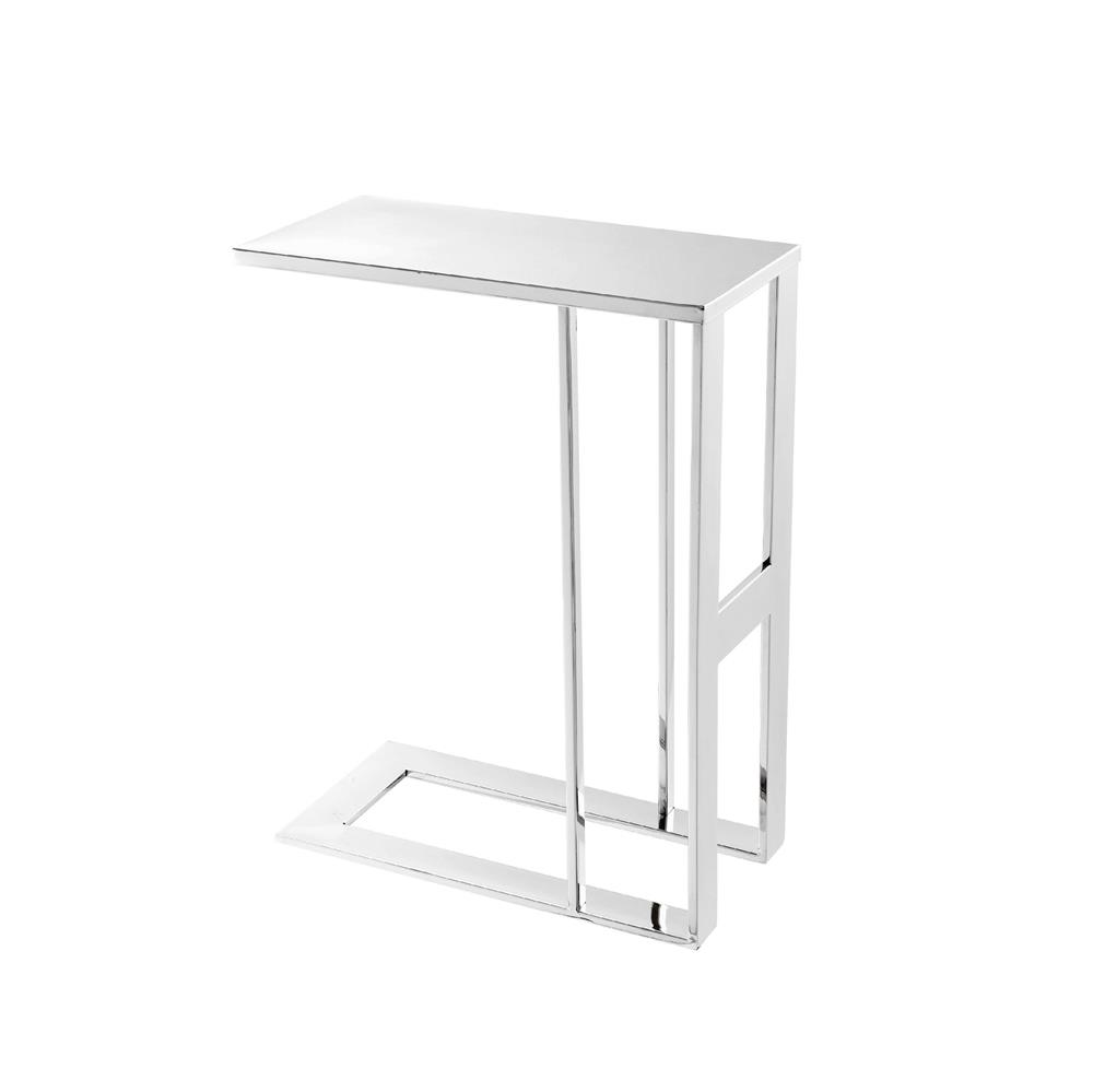 Príručný stolík Pierre z vysokoleštenej ocele.