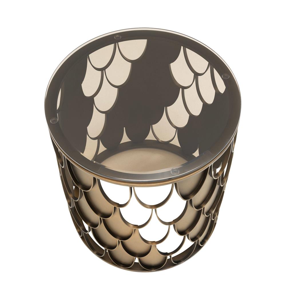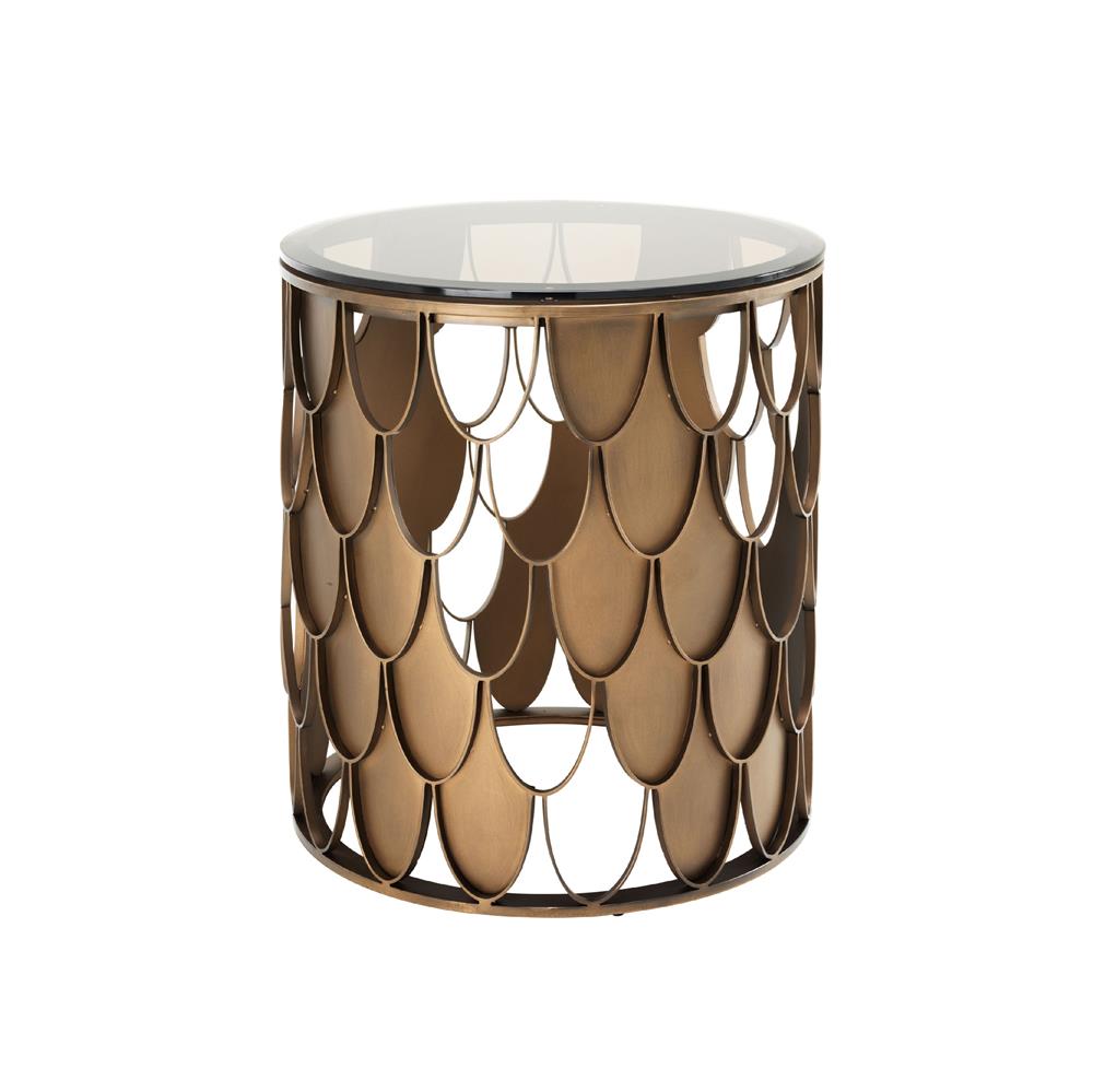 Dizajnový okrúhly príručný stolík L'indiscret s bronzovým dymovým sklom.