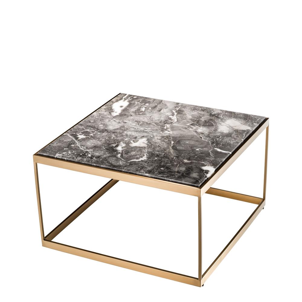 Príručný stolík La Quinta s brúseným mosadzným základom a šedým mramorom.
