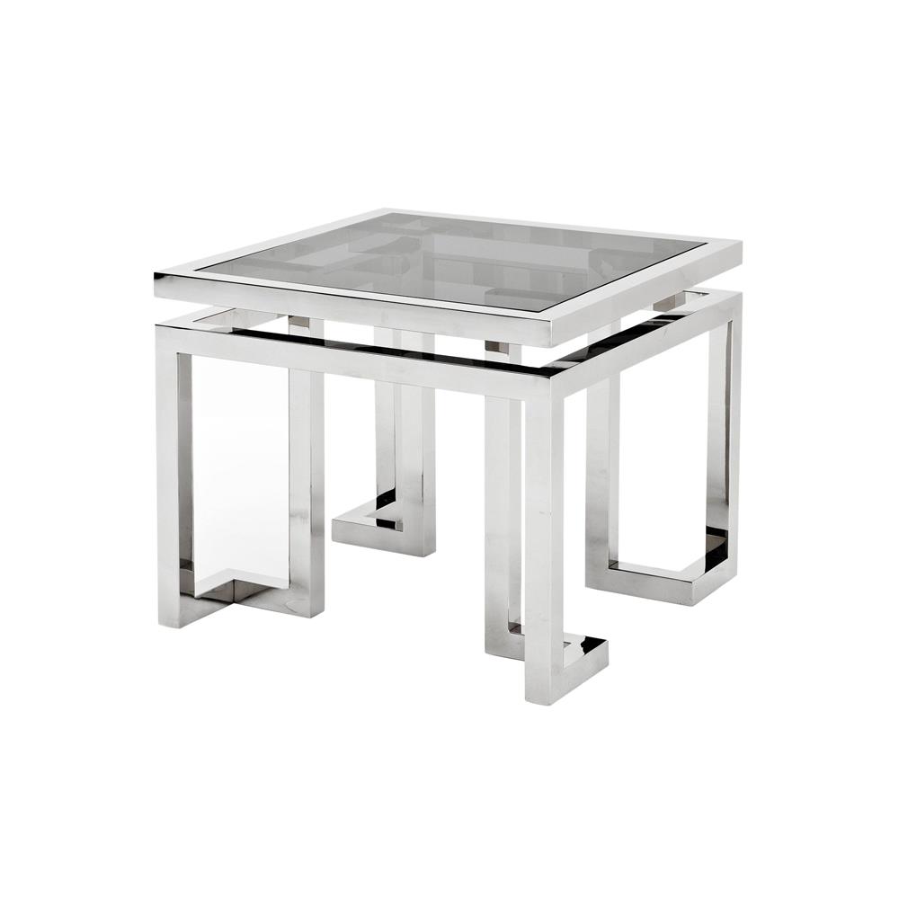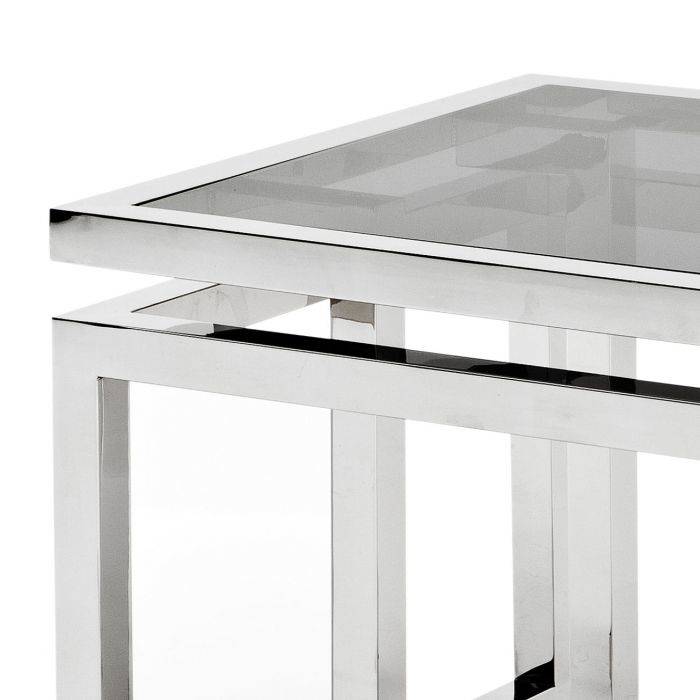 Vysokoleštený oceľový príručný stolík Palmer s čiernym dymovým sklom.
