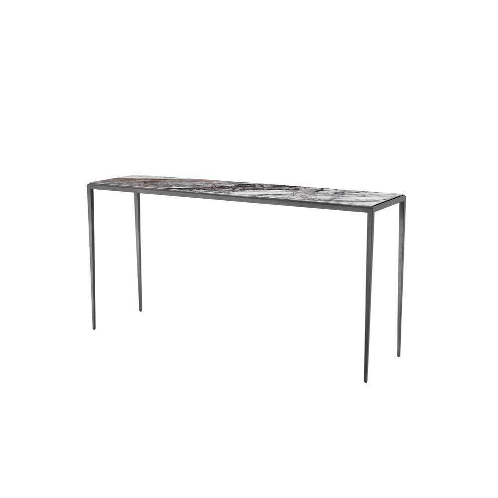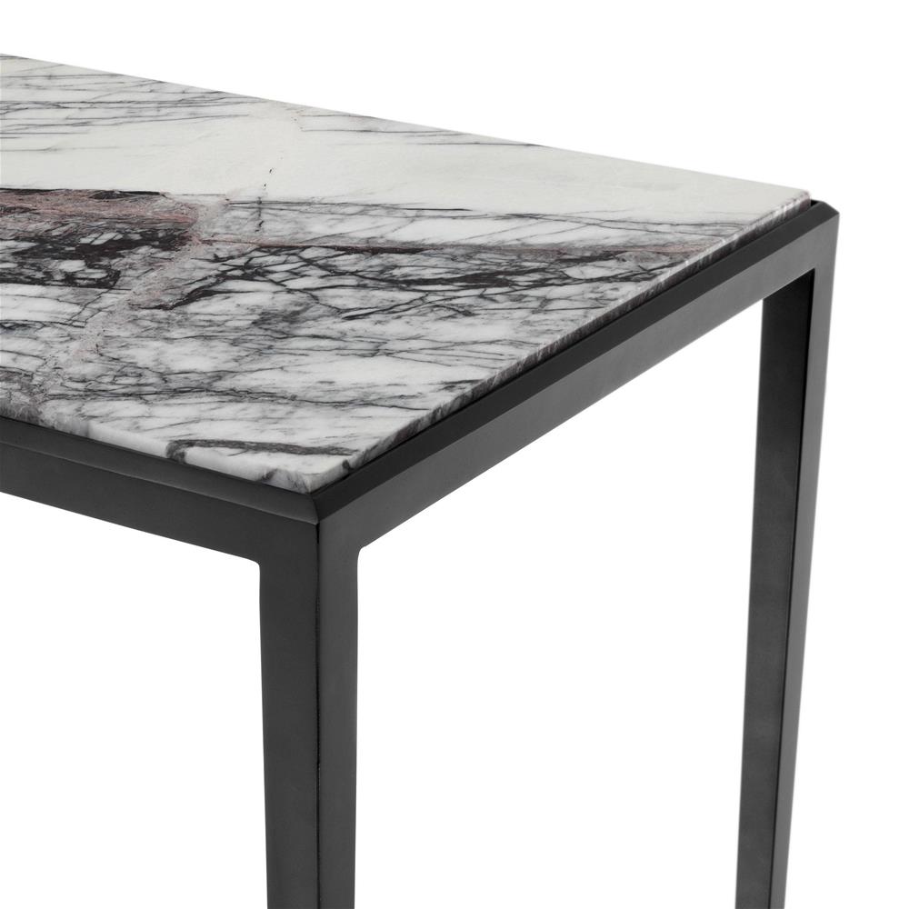 Konzolový stolík Henley z ocele v tmavom prevedení s mramorom bianco lilac.