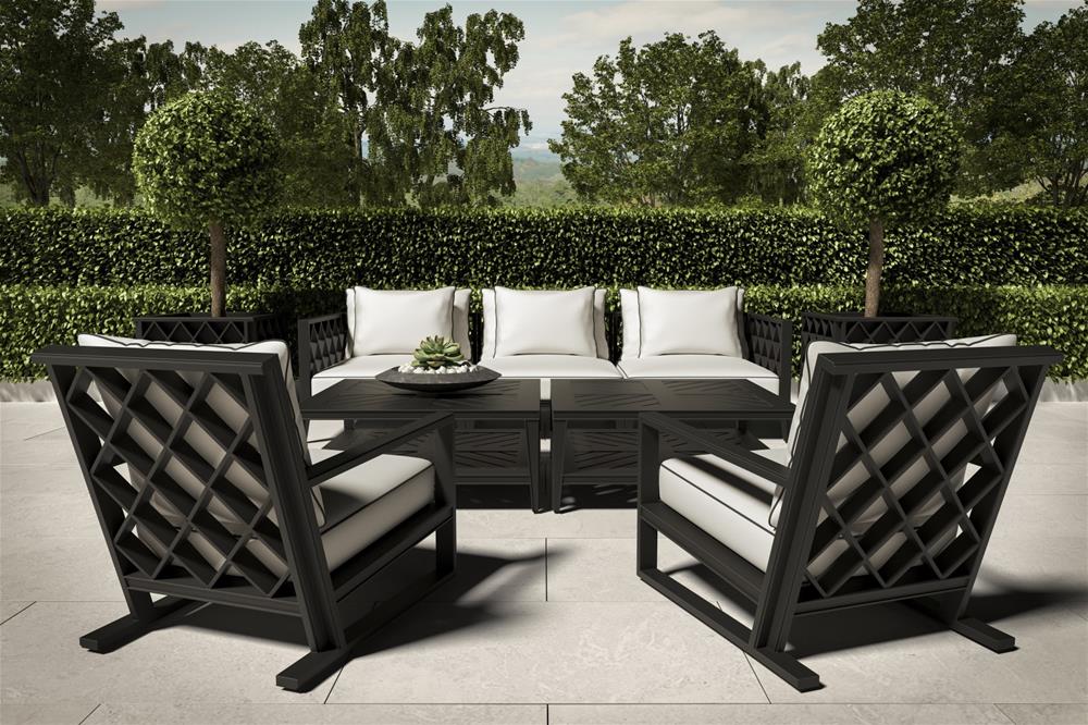 Komfortné záhradné kovové kreslo s opierkami. Vrátane vankúšov.