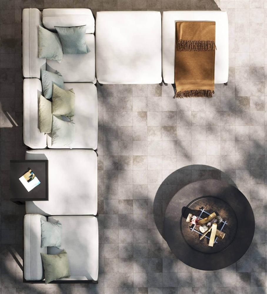 Záhradný príručný stolík z kolekcie Bondi, ktorý si môžete ľubovoľne nakonfigurovať a pripojiť ku segmentom z kolekcie.