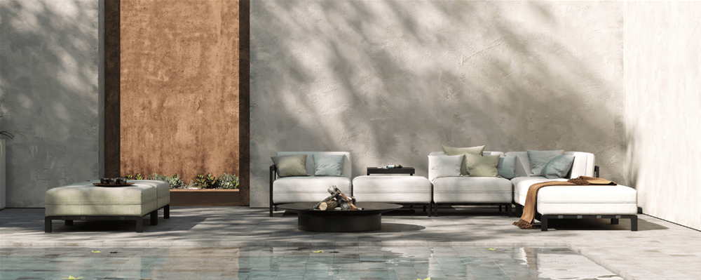 Komfortné outdoorové ležadlo s opierkou z kolekcie Bondi, ktorú si môžete ľubovoľne nakonfigurovať a s viacerými segmentmi pospájať podľa vlastných potrieb.