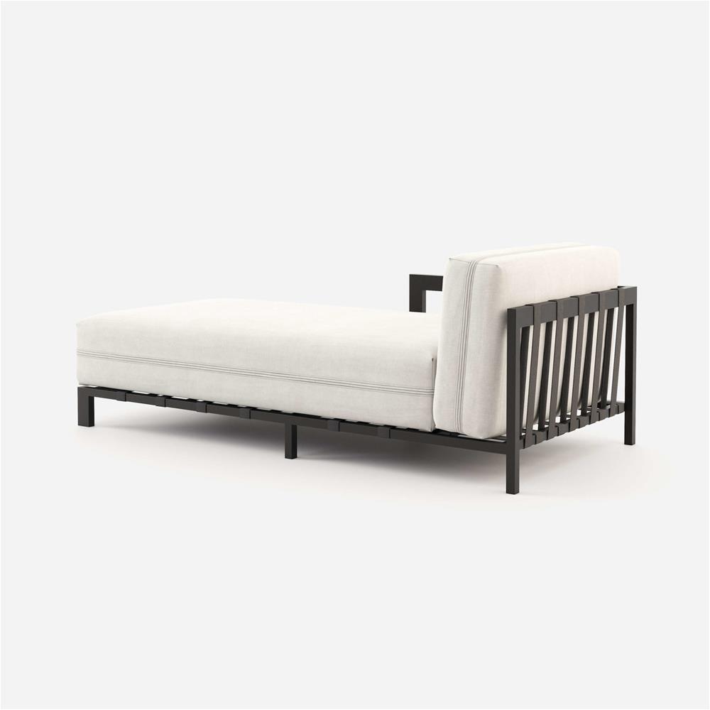 Komfortné outdoorové ležadlo s opierkou z kolekcie Bondi, ktorú si môžete ľubovoľne nakonfigurovať a s viacerými segmentmi pospájať podľa vlastných potrieb.