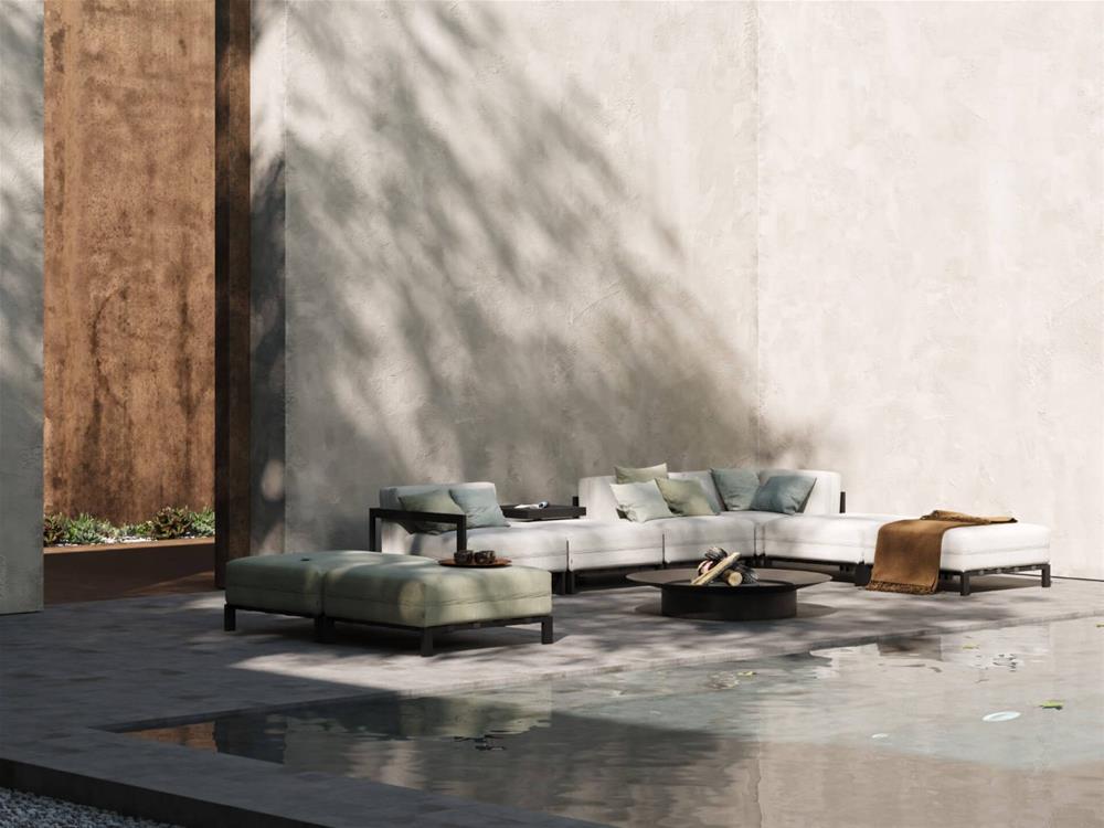 Komfortné outdoorové kreslo s opierkami z kolekcie Bondi, ktoré si môžete ľubovoľne nakonfigurovať a viaceré segmenty pospájať podľa vlastných potrieb.