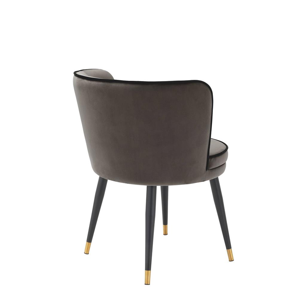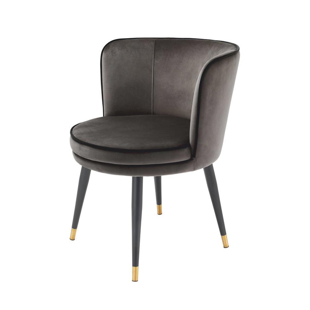 Otáčacia zamatová stolička Grenada s čiernymi nožičkami a mosadznými špičkami.