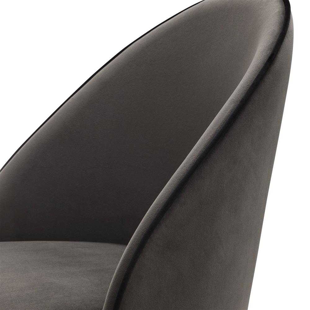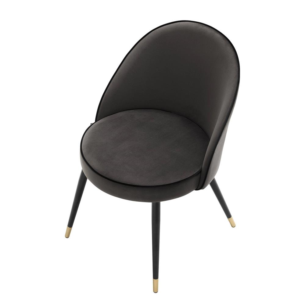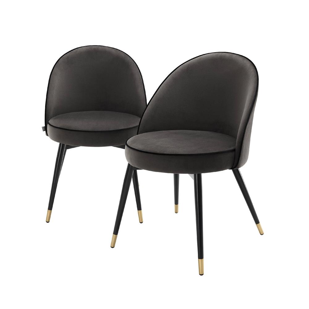 Set dvoch tmavých šedých zamatových stoličiek Cooper s čiernymi nožičkami a mosadznými špičkami.