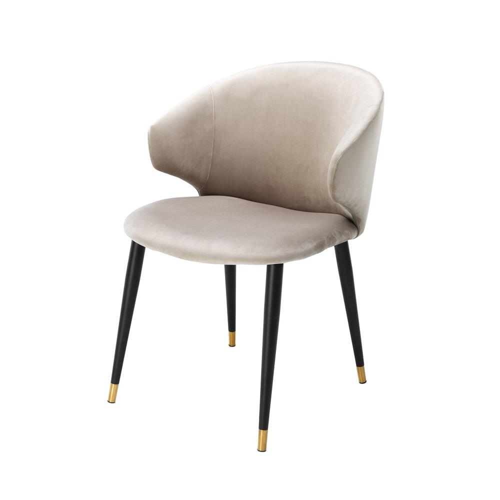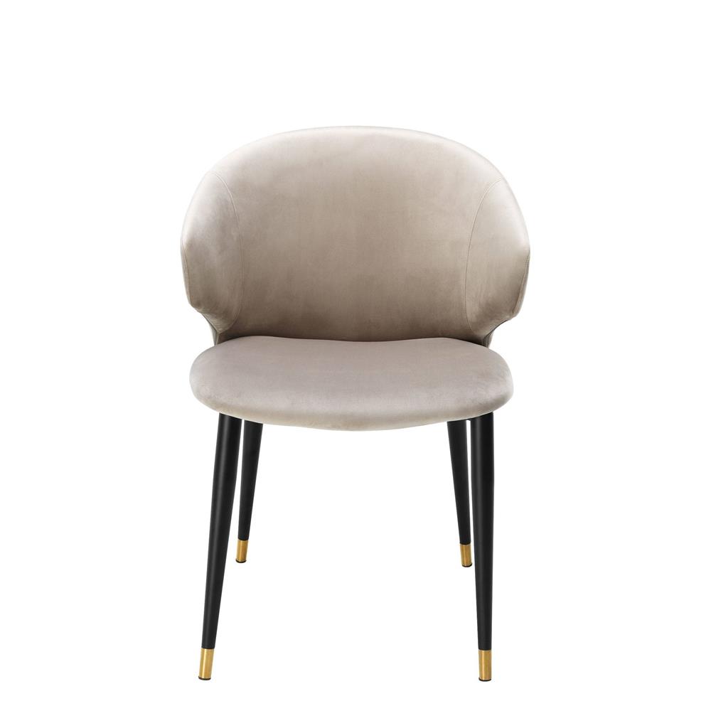 Béžová zamatová stolička Volante s čiernymi nožičkami a zlatými špičkami.