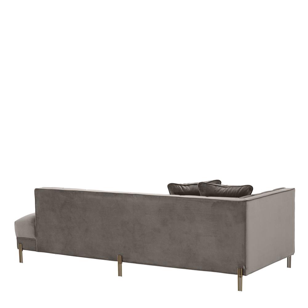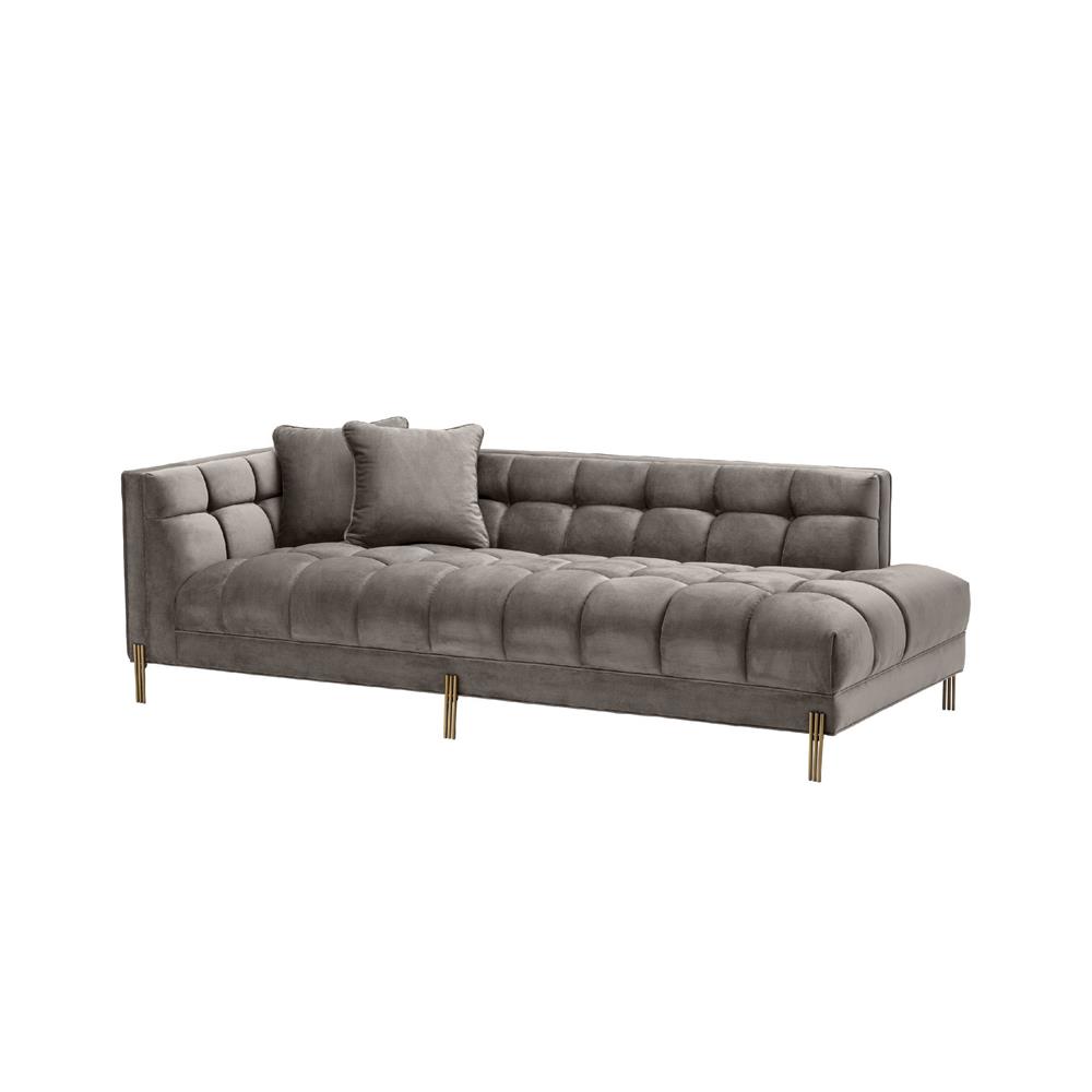 Zamatová lounge leňoška Sienna s gombíkovým čalúnením a matnými mosadznými možičkami. Vrátane vankúšov.