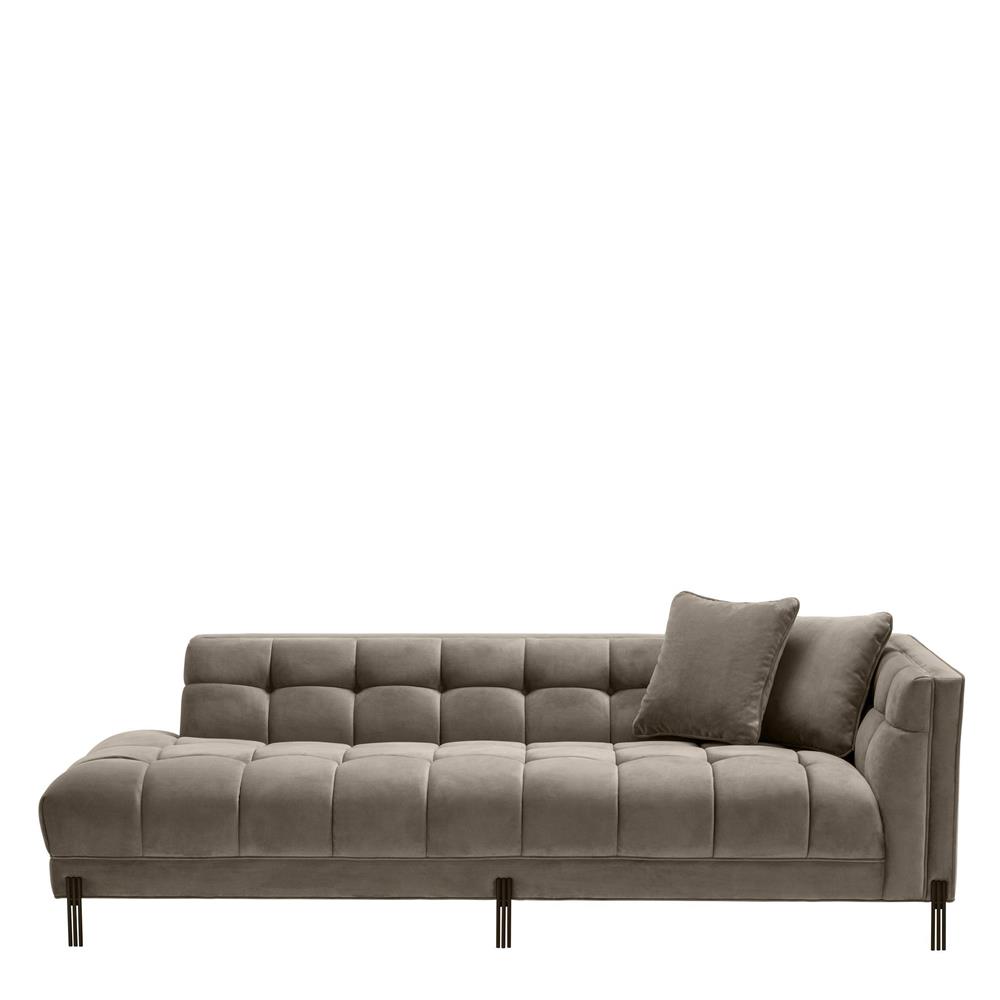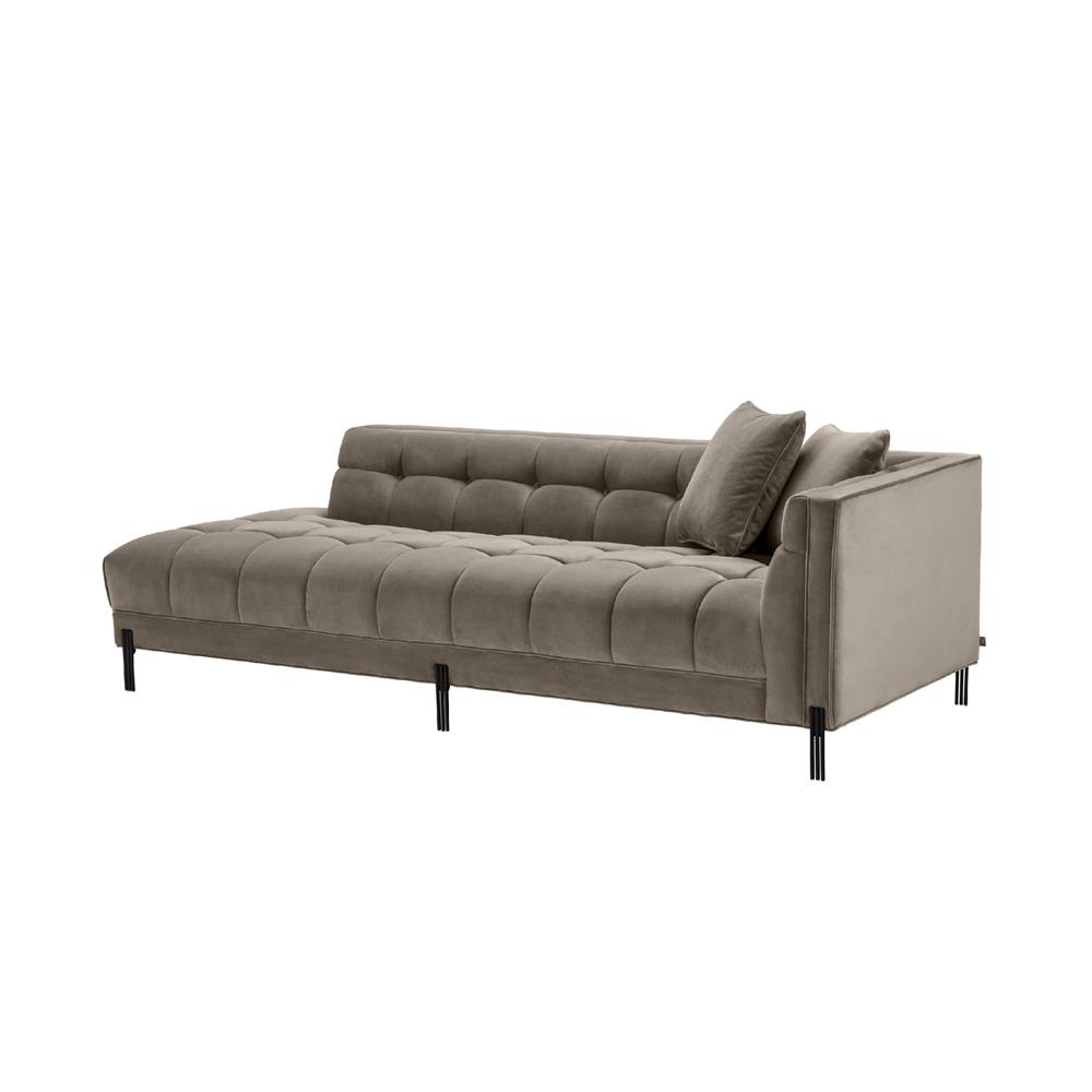 Zamatová lounge leňoška Sienna s gombíkovým čalúnením a matnými čiernymi možičkami. Vrátane vankúšov.