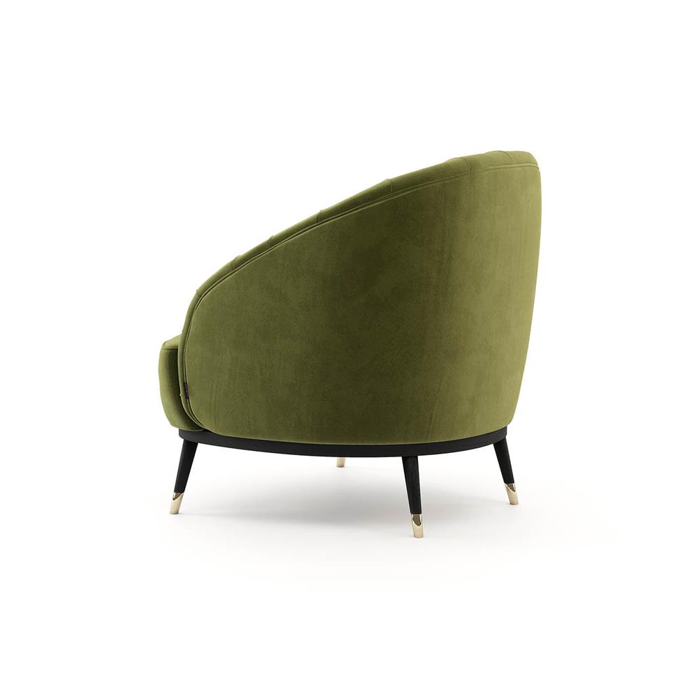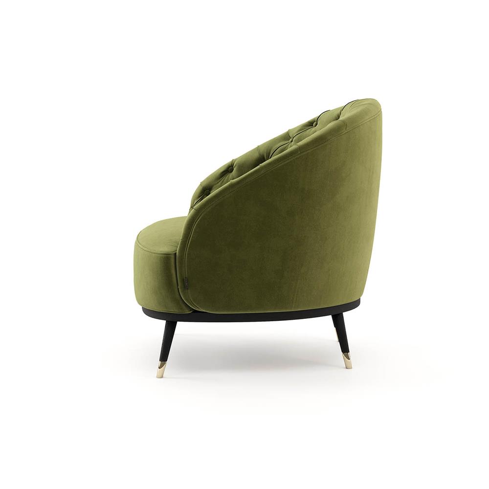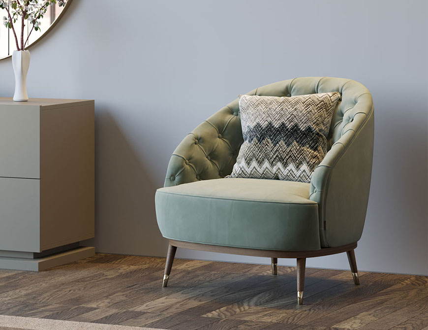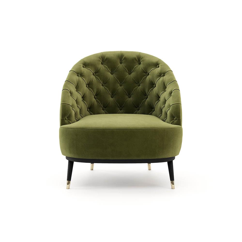 Kreslo Hector s gombíkovým chesterfield čalúnením alebo s čistým hladkým dizajnom.
