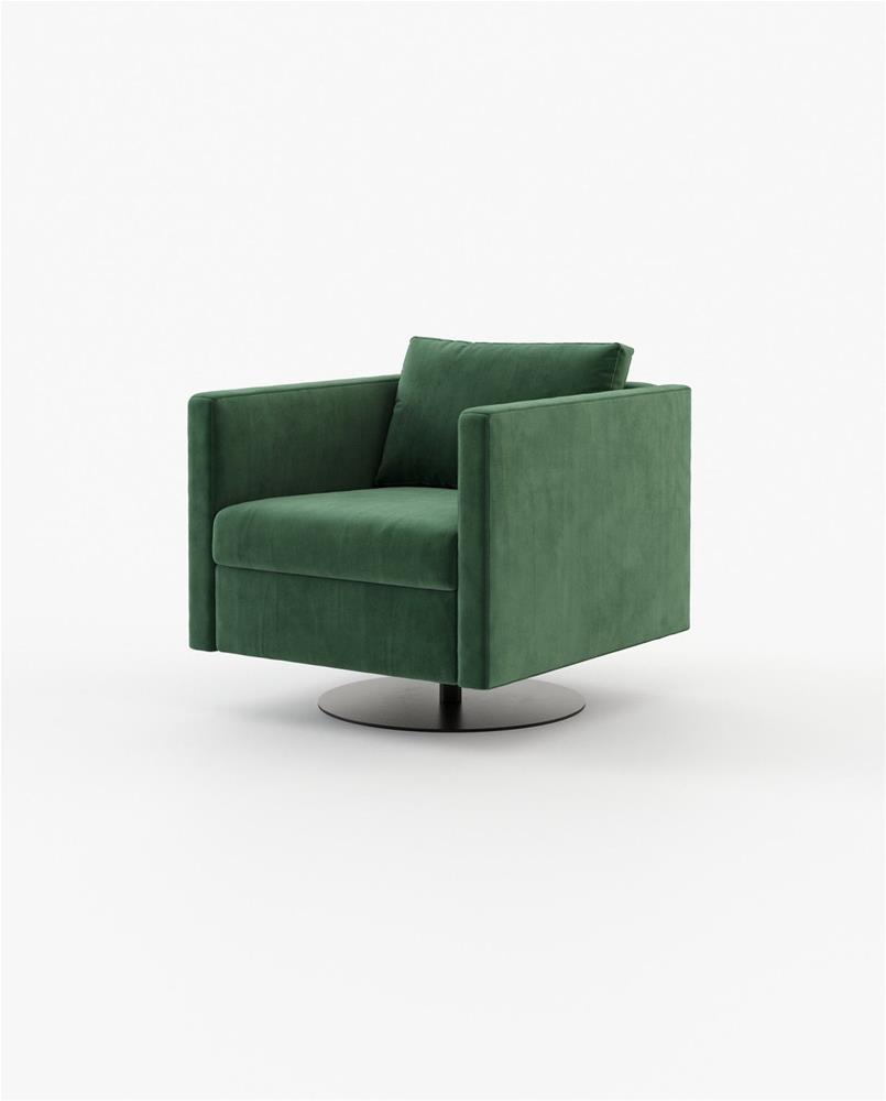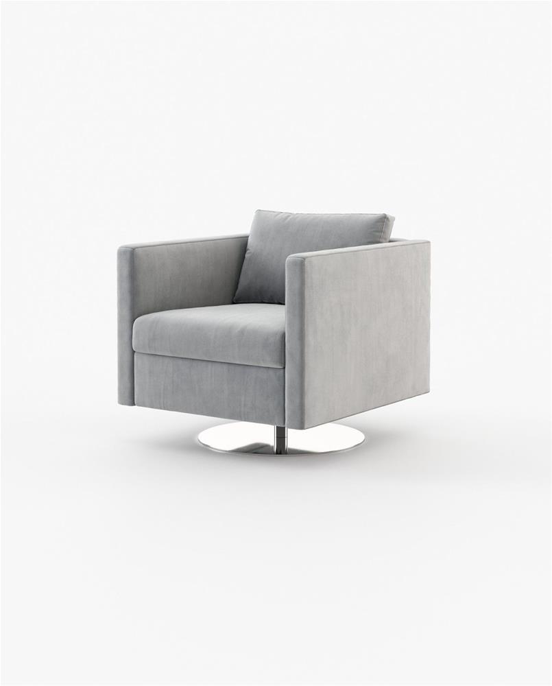 Moderné otáčacie kreslo Marlow s kovovou podnožou.