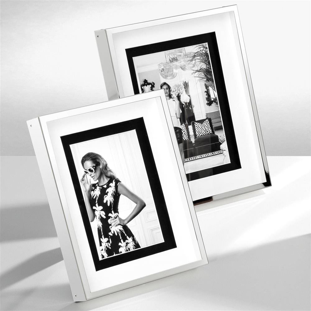 Strieborný fotorámik Gramercy s priehľadným sklom a čierno-bielym pozadím.