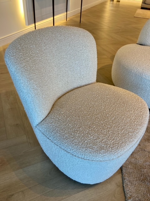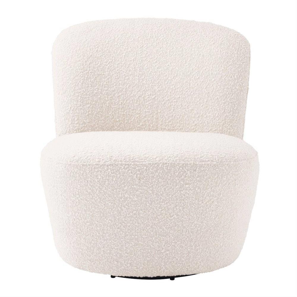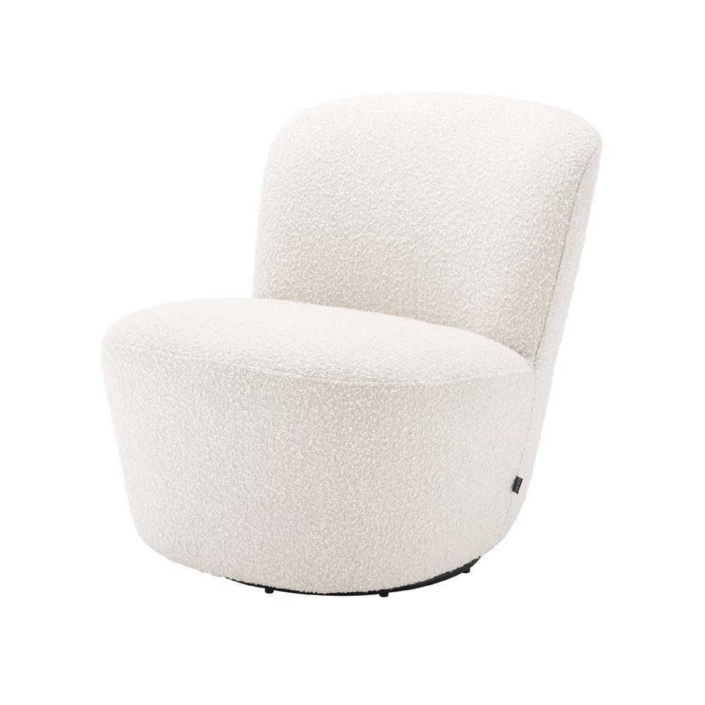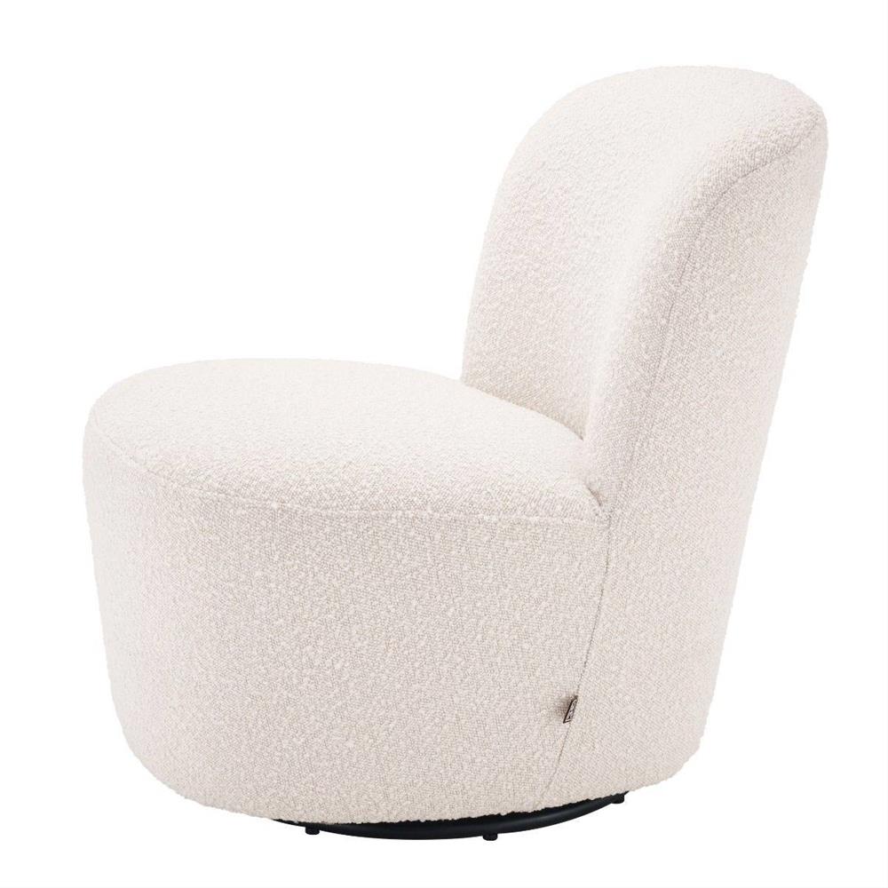 Otáčacie kreslo Doria s bielo-krémovým bouclé čalúnením.