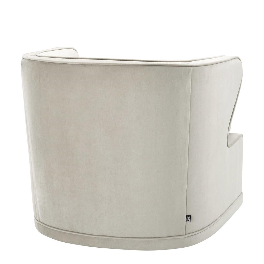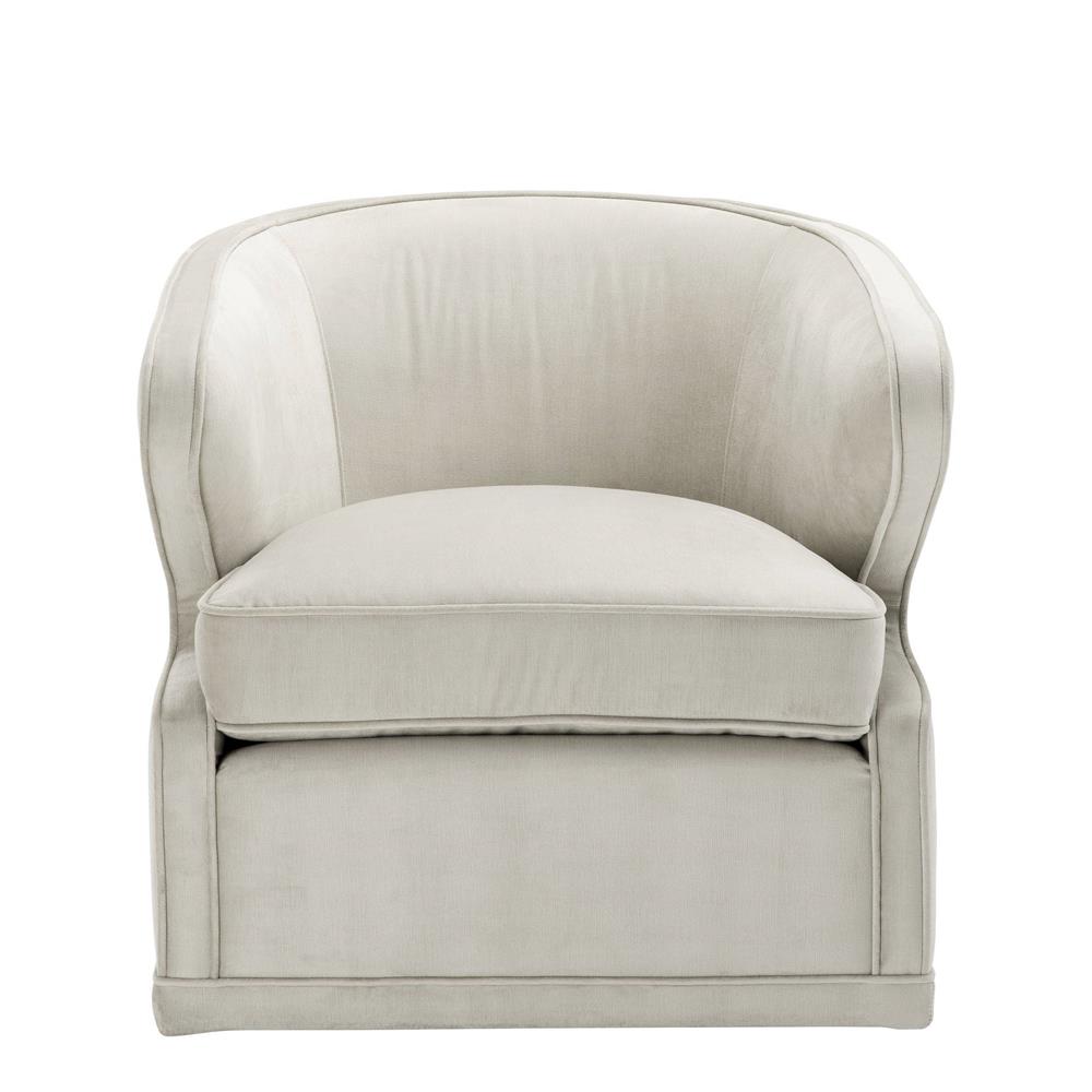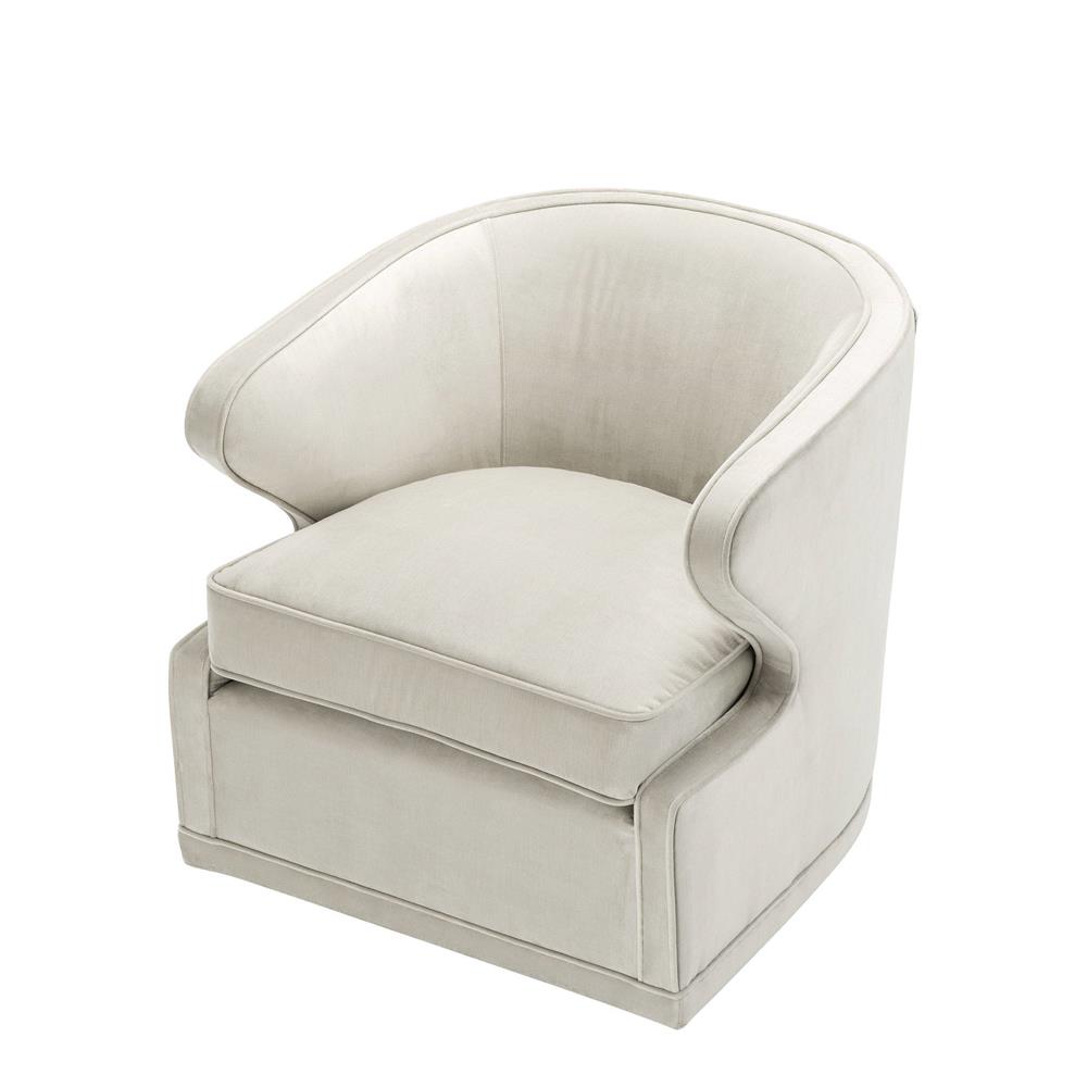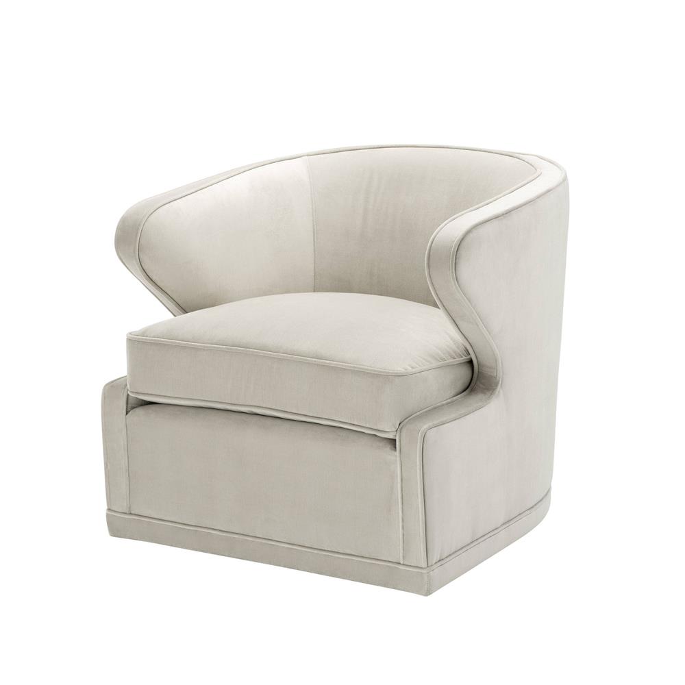 Celočalúnené zamatové otáčacie kreslo Dorset v sivo-bielej farbe.