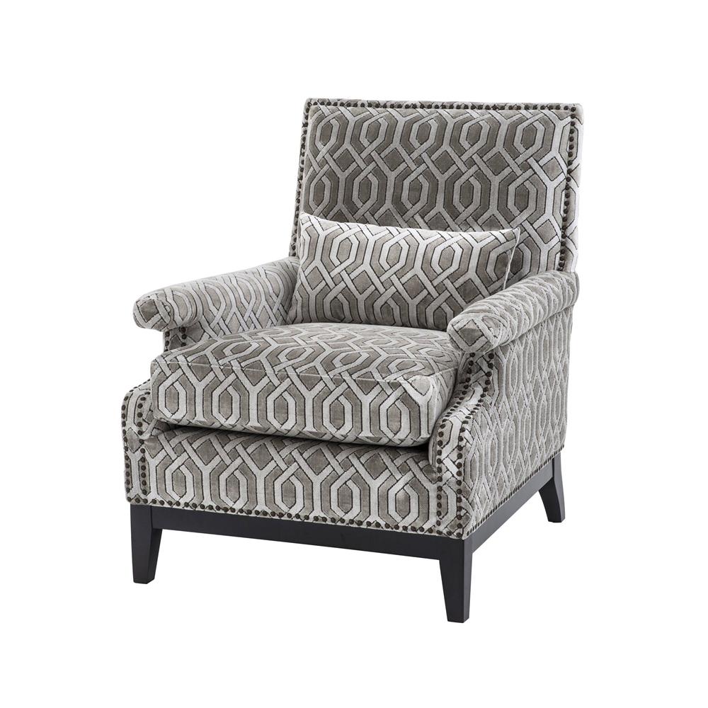 Zamatové vzorované kreslo Goldoni s čiernymi nožičkami a tmavými bronzovými nitmi.