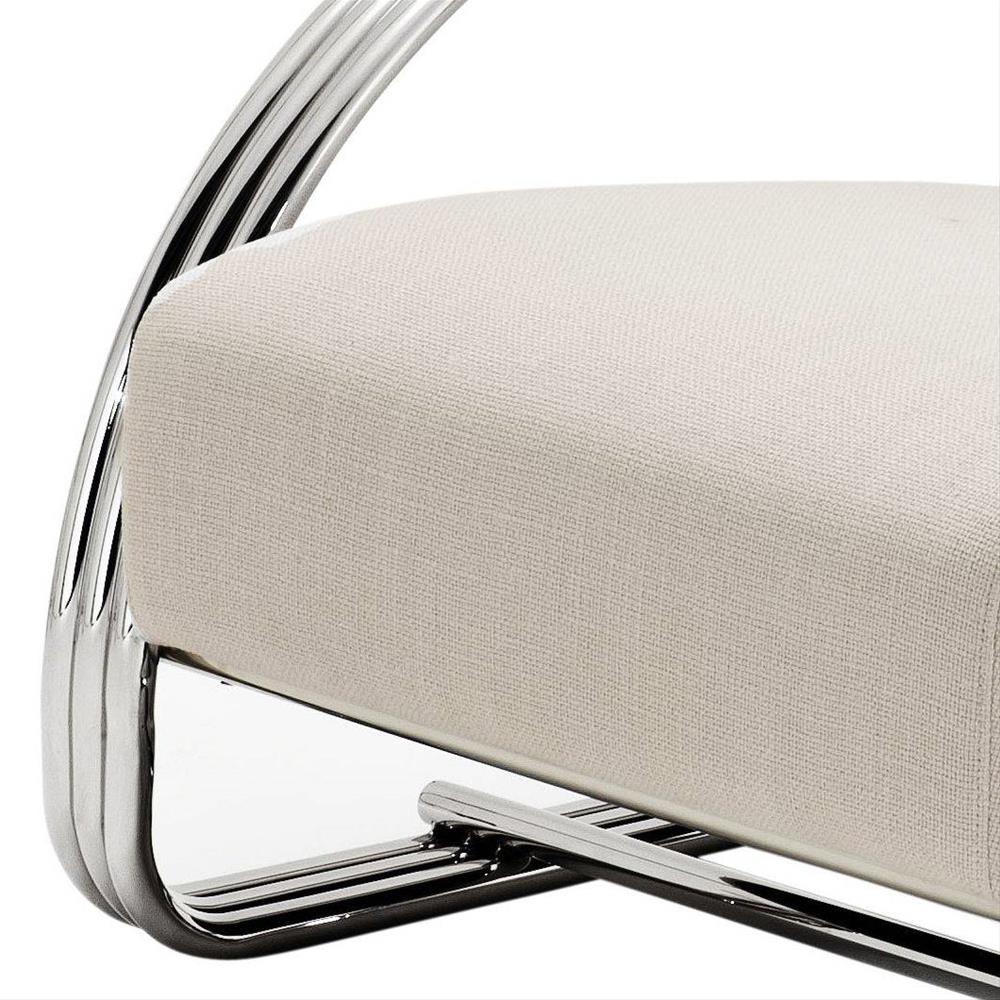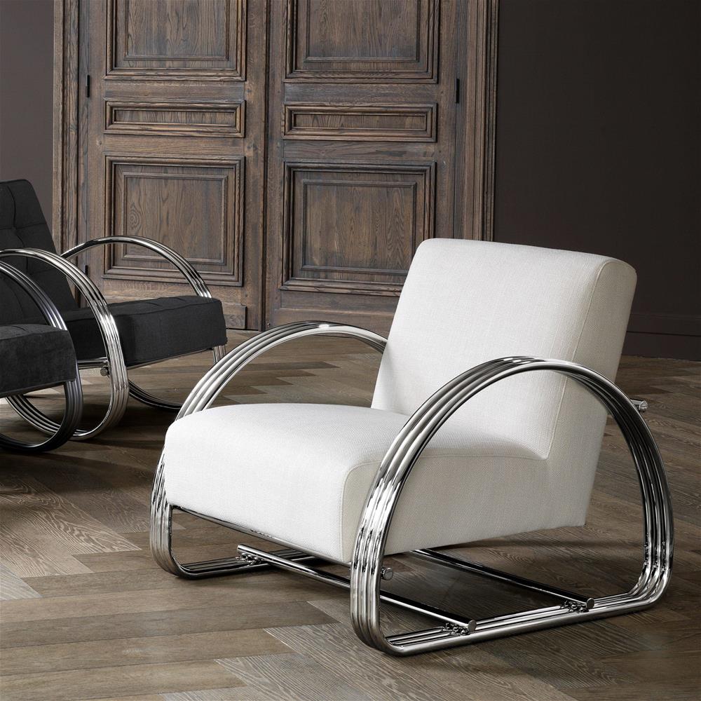 Dizajnové art deco kreslo Basque s vysokoleštenými oceľovými nohami a opierkami.