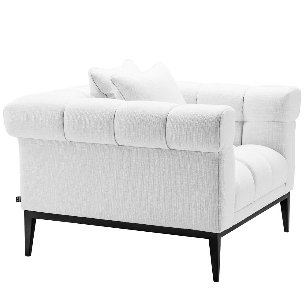 Glamour kreslo Aurelio s vankúšmi v bielej farbe s čiernymi nožičkami.