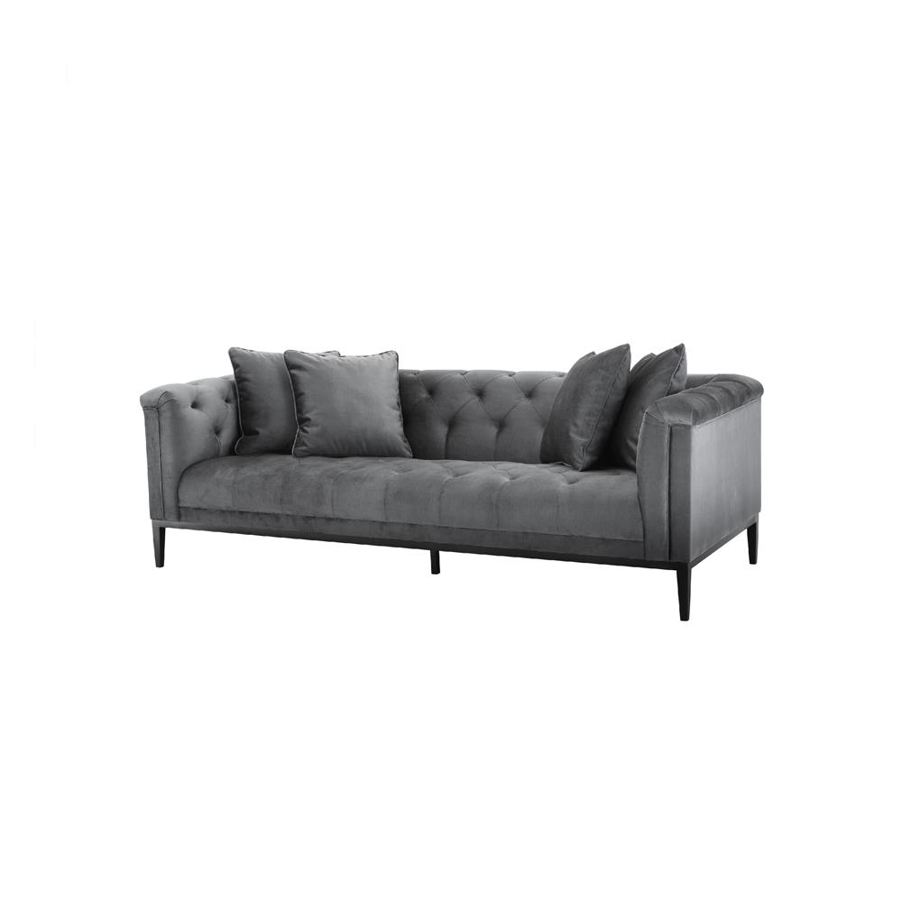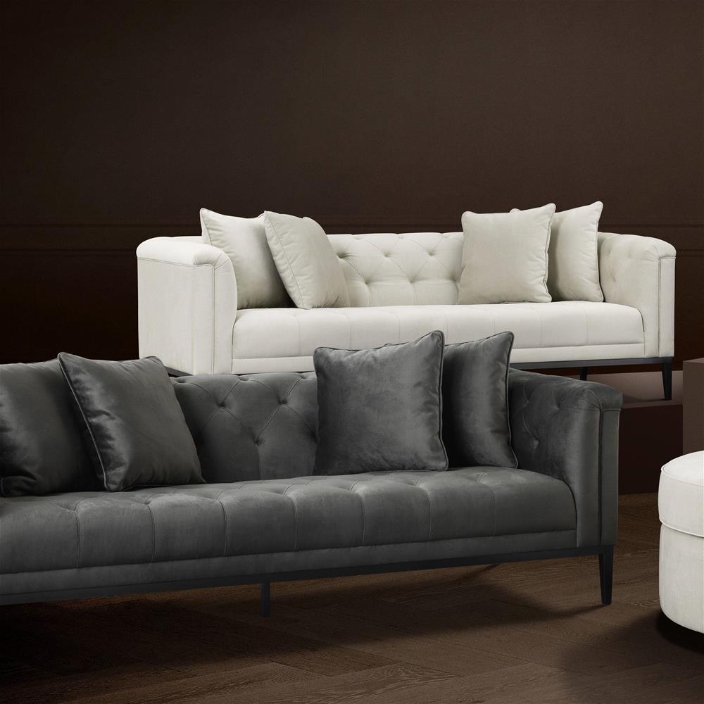 Sivá pohovka Cesare je inšpirovaná klasickým nábytkom Chesterfield v jemnejšom dizajne so všívaným stehom. Vrátane vankúšov.