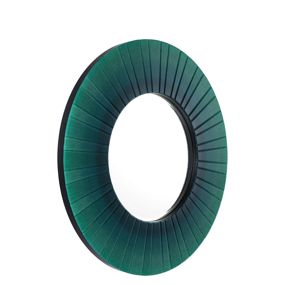 Fazetované okrúhle zrkadlo Lecanto s ombré tyrkysovým rámom.