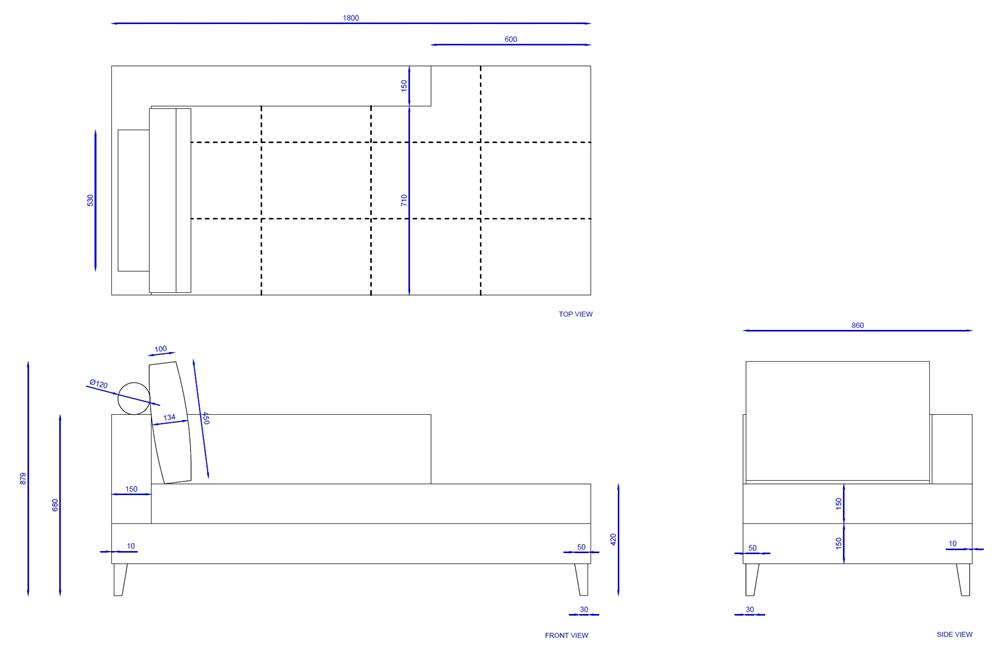 Rozmery: dĺžka 180 cm, šírka 86 cm, celková výška 88 cm