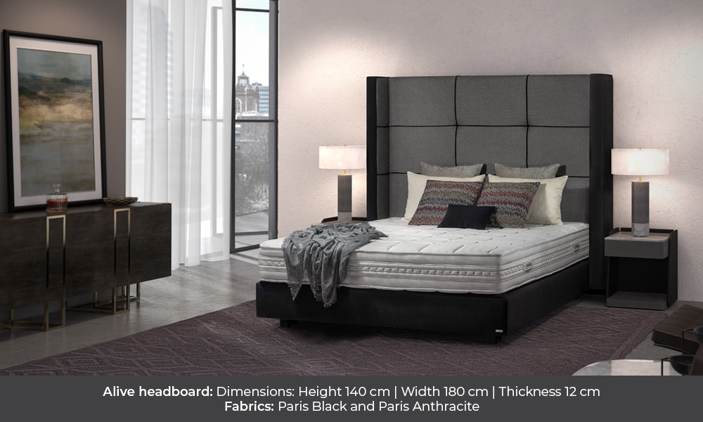 Čalúnená posteľ Alive v ponuke s vlastným výberom čalúnenia a základu: