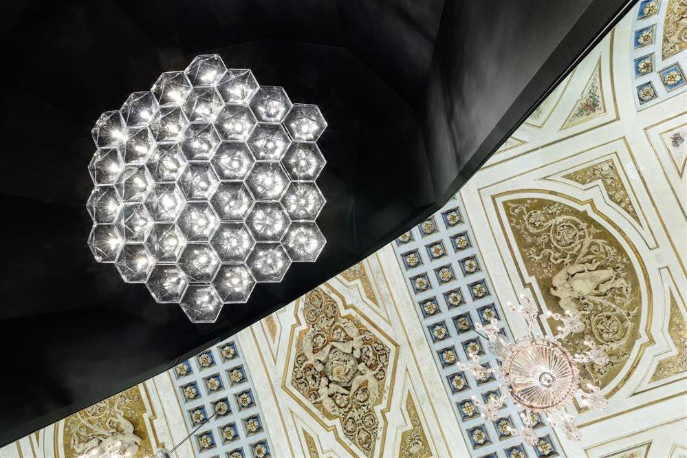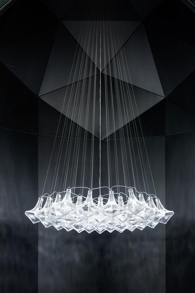 Moritz Waldemeyer vzal geometrický tvar obrysu lustru Classic a zmenil ho na šesťuholníkovú sklenenú jednotku podobnú diamantu. Komponenty FACET vynikajú jasne, disciplinovane a geometricky. Dostupný v troch veľkostiach: