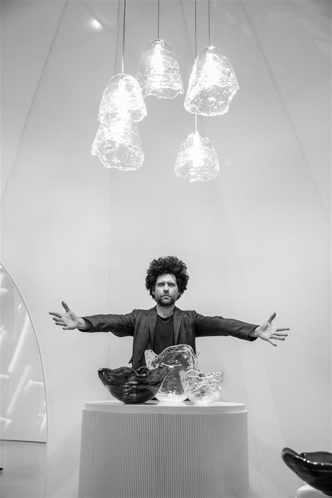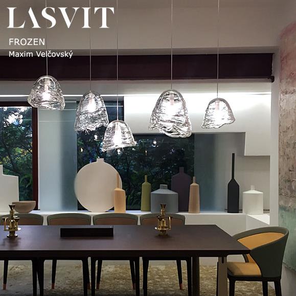 Kolekcia svietidiel Frozen bola inšpirovaná premenou vody na ľad. Maxim Velčovský umožňuje rozliatie skla na kovovú formu a hľadá výhody v jeho prírodných vlastnostiach. Každý kus je jedinečným záznamom celého procesu. Autor našiel inšpiráciu medzi kúskami ľadu, ktoré vytvorila príroda, a tento prvok náhodnosti v prírode aplikoval vo svojom remesle.