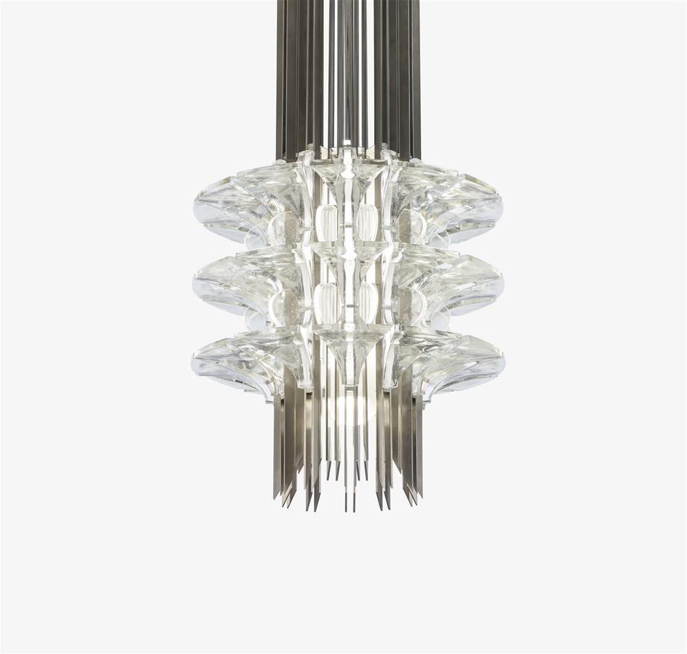 Jedna z prvých inšpirácií pre tento luster je z Billovej expedície na ostrov Ellesmere, kde sa vydal po ľadovcoch. Keď nasekal kúsok ľadu na pitnú vodu a pozrel sa naň, čerstvo napadnutý ľad mal skoro rovnakú vizuálnu kvalitu liateho skla. Luster Glacier je kus zimnej krásy, ideálny na výstavu v dome, ktorý znesie každú zmenu ročného obdobia.