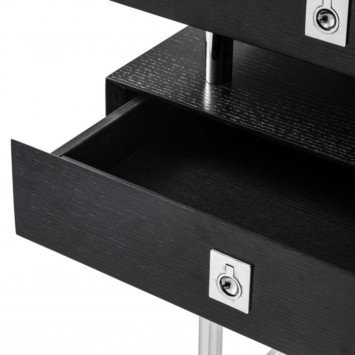polished stainless steel | black oak veneer