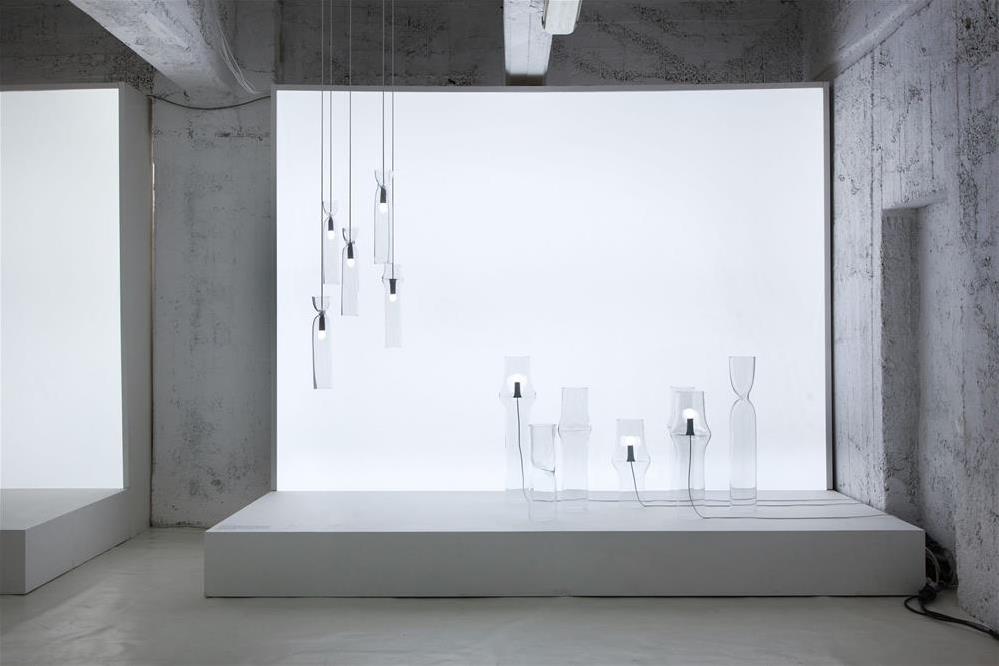 Dizajnová lampa z ručne fúkaného skla z kolekcie Press by Nendo.