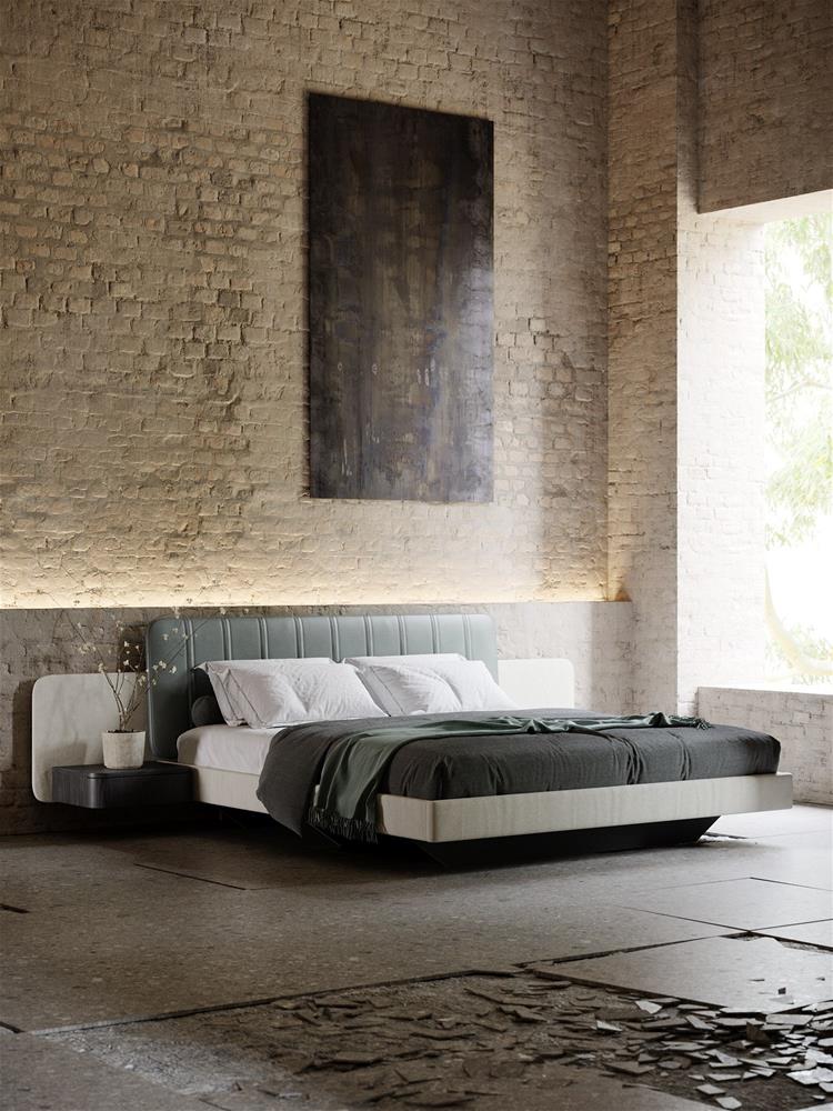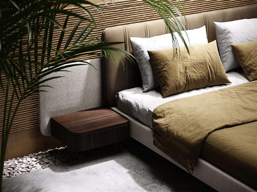 Čalúnená posteľ Amanda s nočnými stolíkmi. Posteľ sa dodáva vrátane roštov.