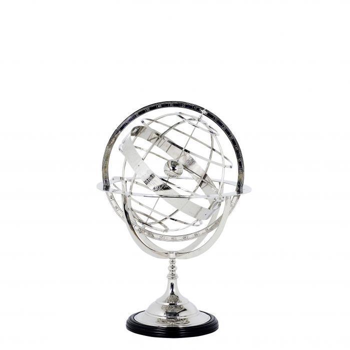 Dekoratívny glóbus v chrómovom prevedení s čiernym základom.