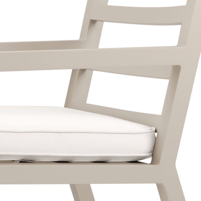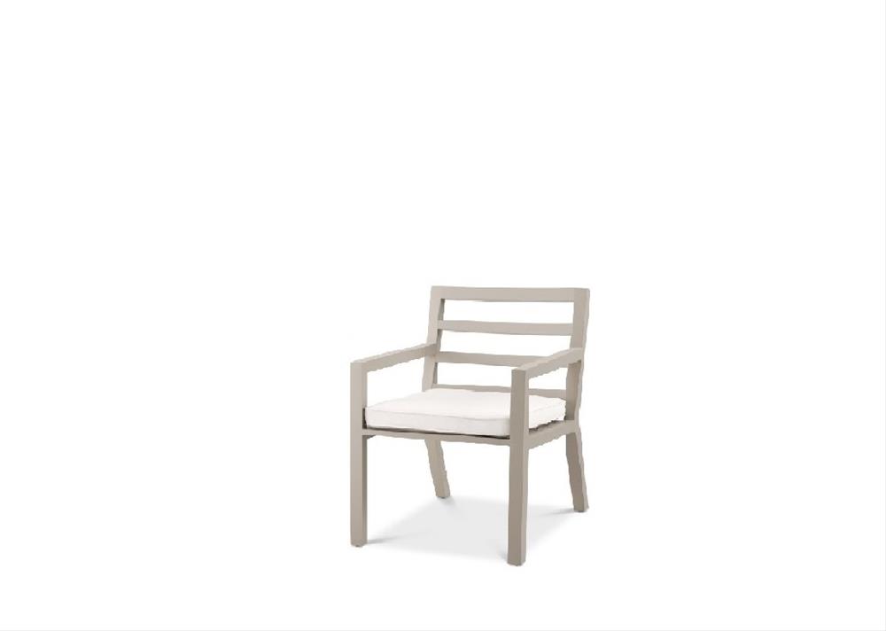 Táto jedálenská stolička s opierkami v pieskovej farbe je navrhnutá tak, aby dokonale dopĺňala jedálenský stôl Vistamar.