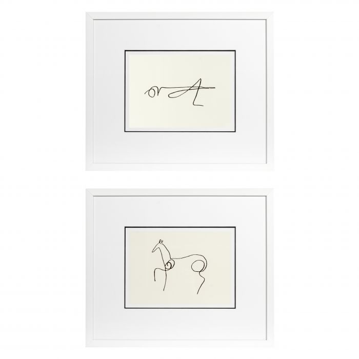 Set 2 obrazov Pablo Picasso s bielym dreveným rámom a čírym sklom.