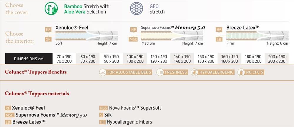 Pri použití s matracom Colunex® alebo s matracom inej značky zabezpečuje toper trvalý komfort.