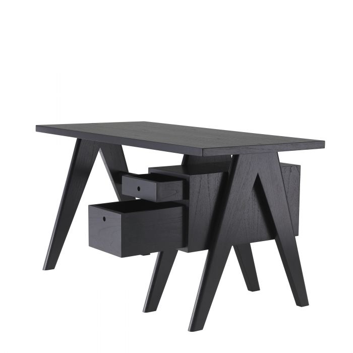 Tento minimalistický písací stôl je vyrobený z masívneho dreva a má klasický čierny povrch. Vďaka otvorenej polici a skrinke s dvoma zásuvkami ponúka dostatok úložného priestoru pre váš laptop, dokumenty, písacie potreby a nabíjacie káble.