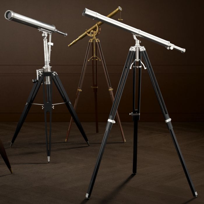 Nastaviteľný teleskop Maritime na drevenej trojnožke z palisandrového masívu v čiernom prevedení.