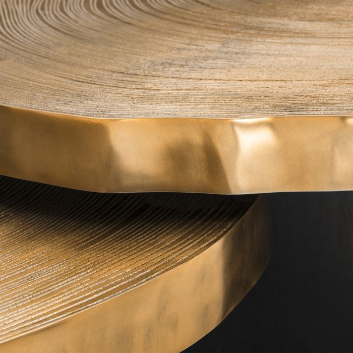 Nepravidelný obrys stolových dosiek a štruktúra dreva dodávajú tejto atraktívnej súprave 2 konferenčných stolíkov Thousand Oaks jedinečný vzhľad. Stoly sú vybavené drevenou doskou s mosadzným povrchom a čiernym podstavcom, líšia sa výškou, aby získali ďalší rozmer. Táto lákavá sada je vhodná pre rôzne interiérové štýly a farebné schémy.